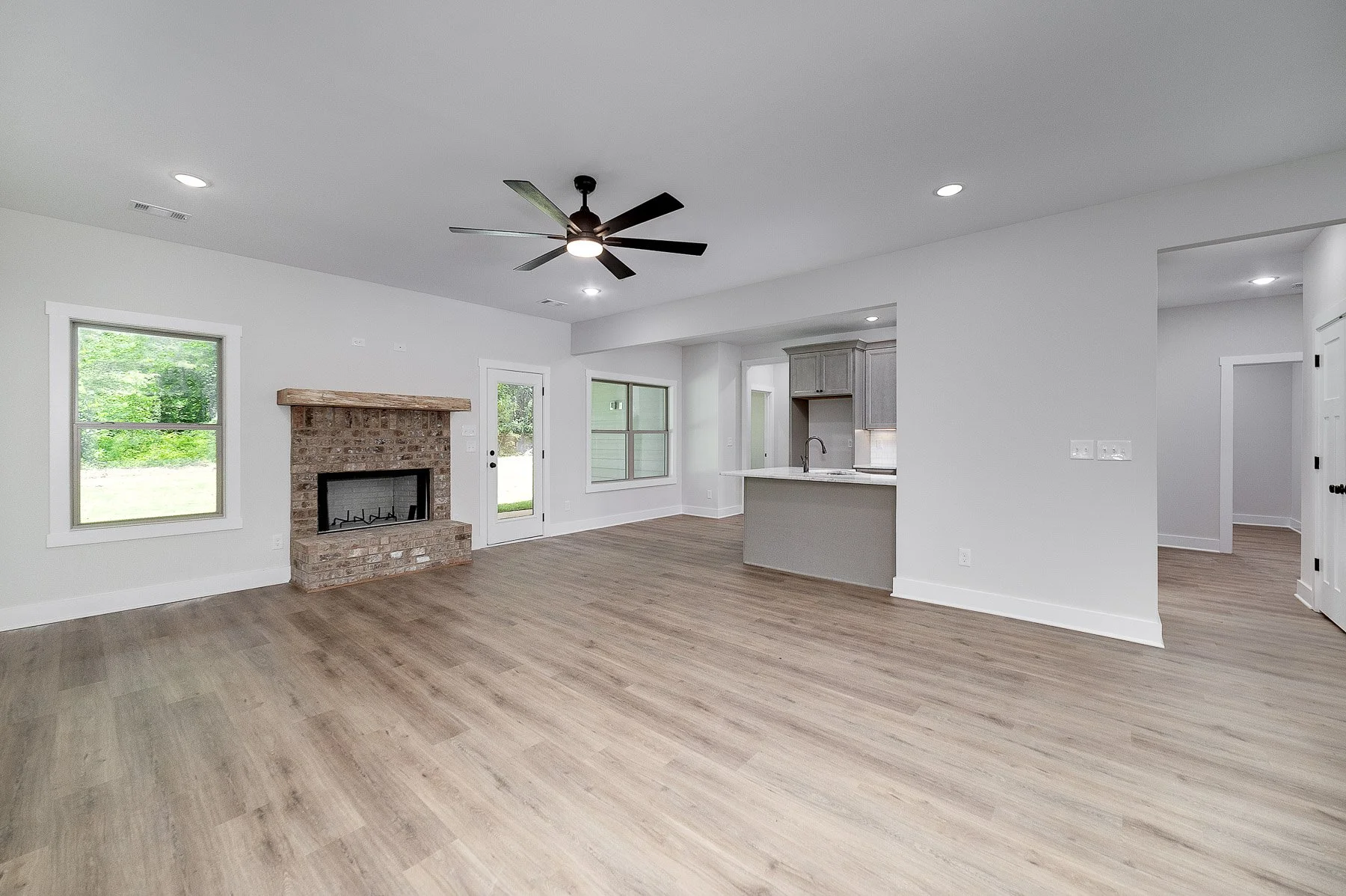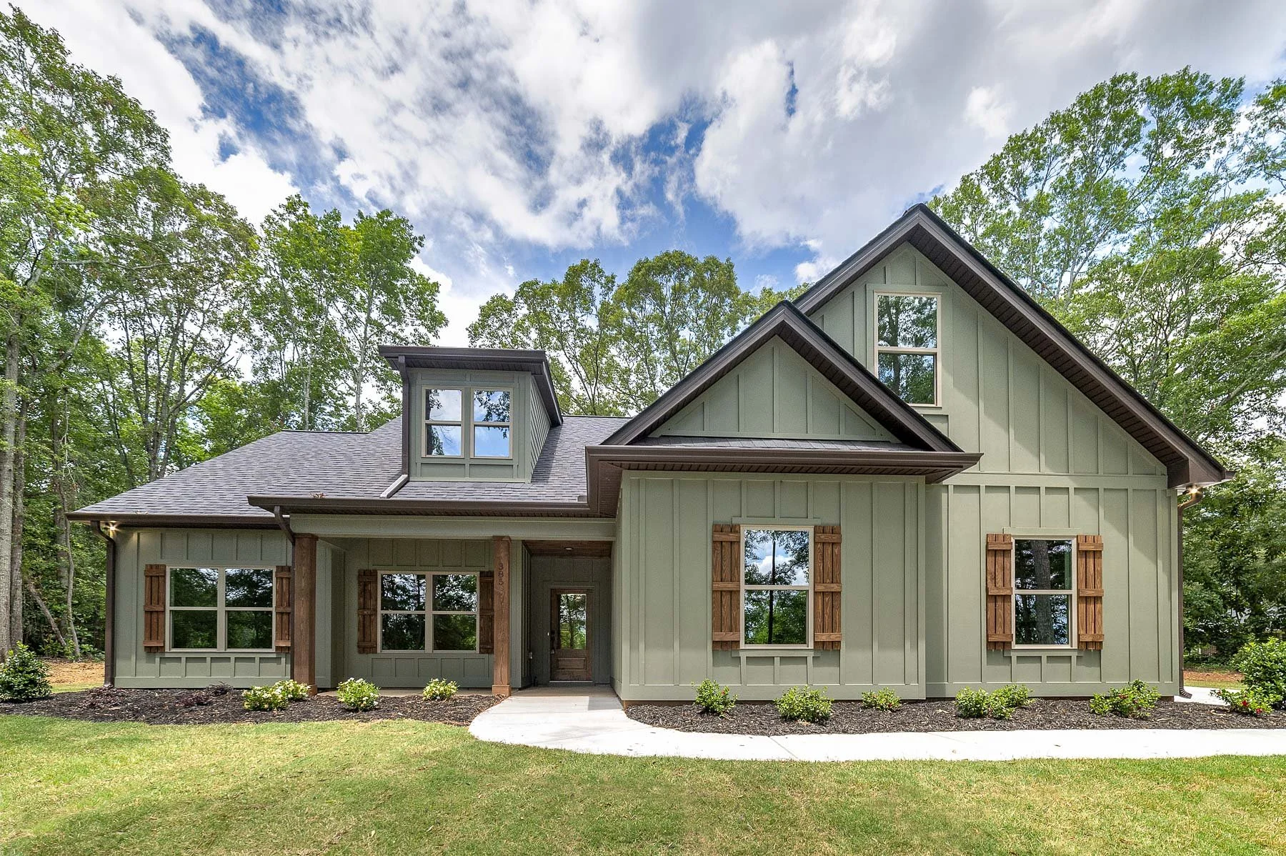 2,270 square foot ranch-style home offering 4 bedrooms, 3 full bathrooms and a media room. The great room has a real wood-burning fireplace and opens to the dining room and kitchen. The 600 square feet of porch space showcases a tongue-and-groove ceiling for added character and style. The owner's suite features a vaulted ceiling, a custom tile shower, double vanities, and a spacious walk-in closet.. There are 2 additional bedrooms on the main floor, which share a full bathroom. Located upstairs is the 4th bedroom, a full bathroom and large media room/bonus room. 2 car-side entry garage.